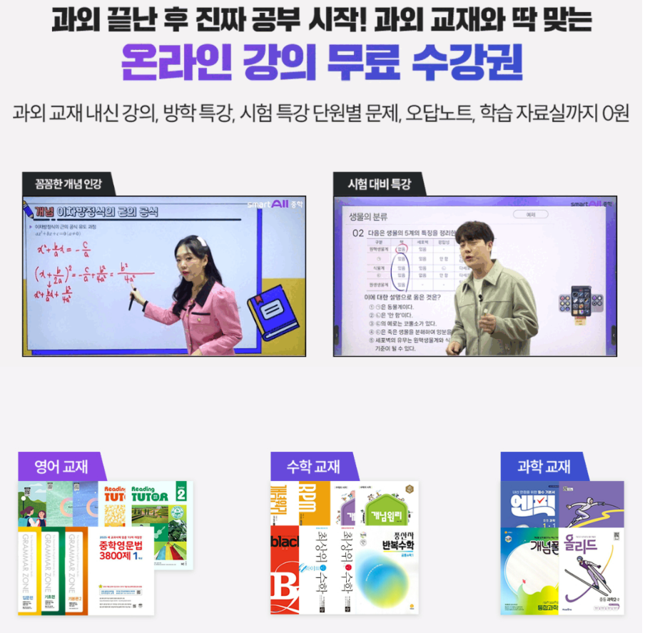 - 수학·영어·과학 전 과정 전담! 예습 → 실전 → 복습까지 올인원 솔루션