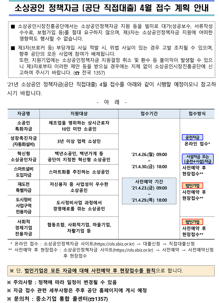 - 정책자금은 예산 한도 내에서 선착순 집행